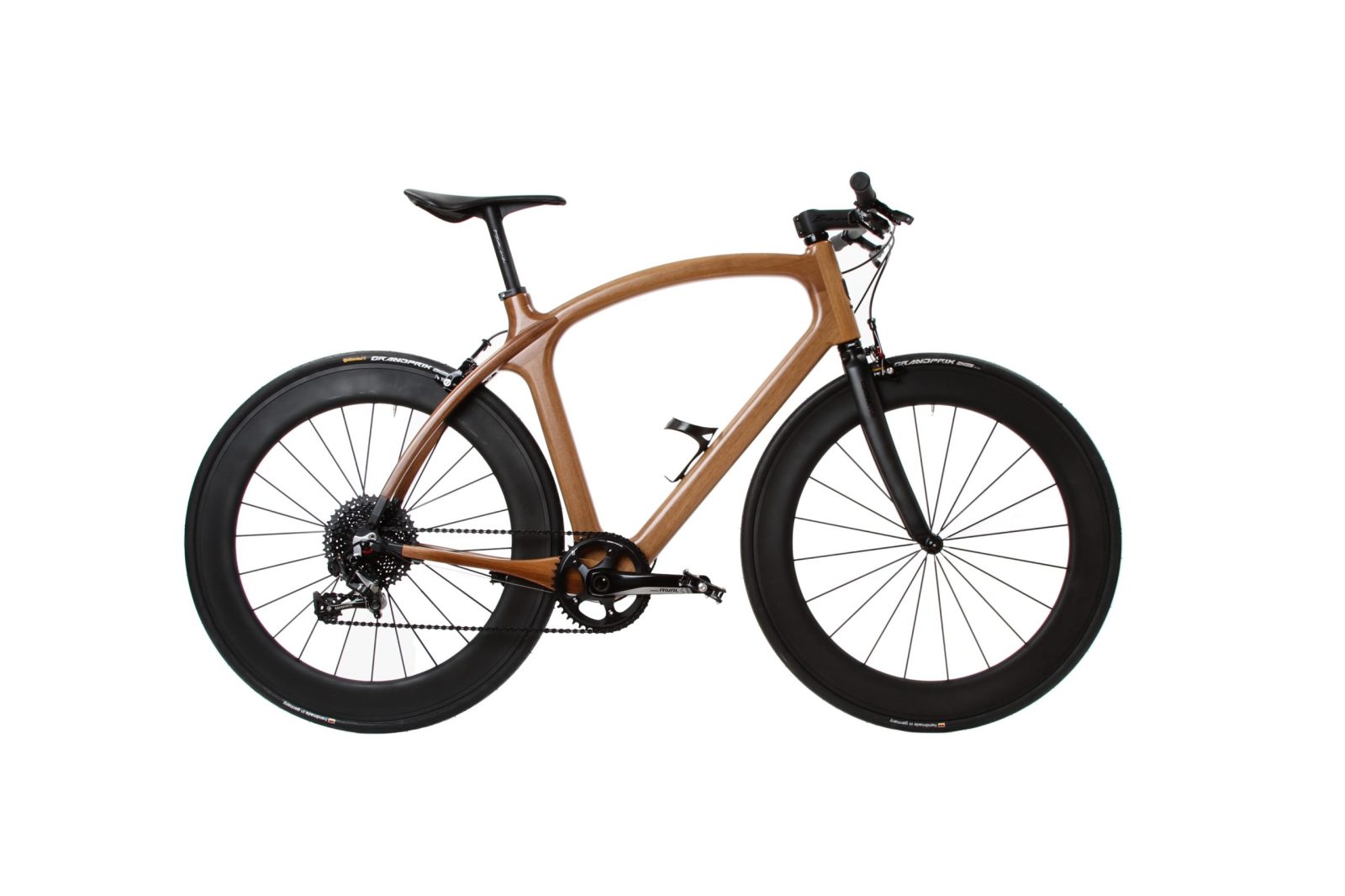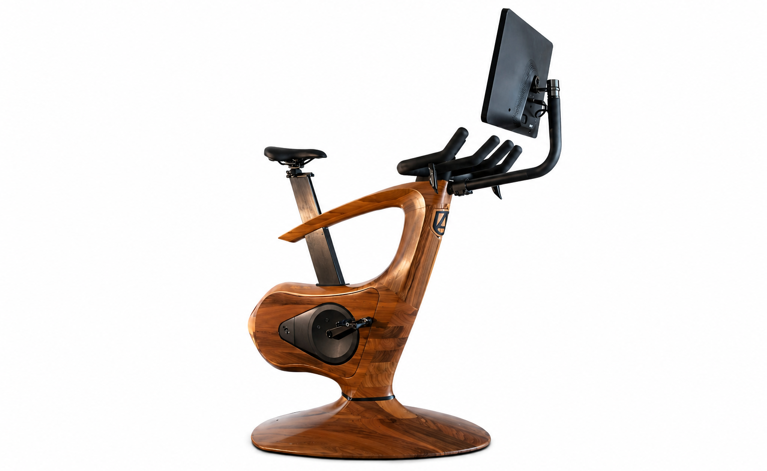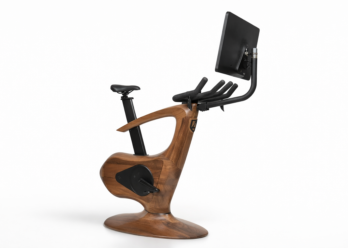 It is a wooden gym bike — conceived as a functional training machine and a sculptural design object.